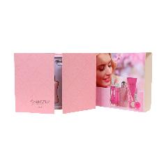 A women's gift set consisting of 6 pieces, which includes Delina fragrance - a feminine scent - along with a small tester, lip gloss, body fragrance, body cleanser, and body lotion.
