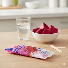 عبارة عن نصف فاكهة التنين ومجمدة على شكل مثلجات لذيذة ومميزة جدا. It is half a dragon fruit frozen in the form of a delicious and very special ice cream.
