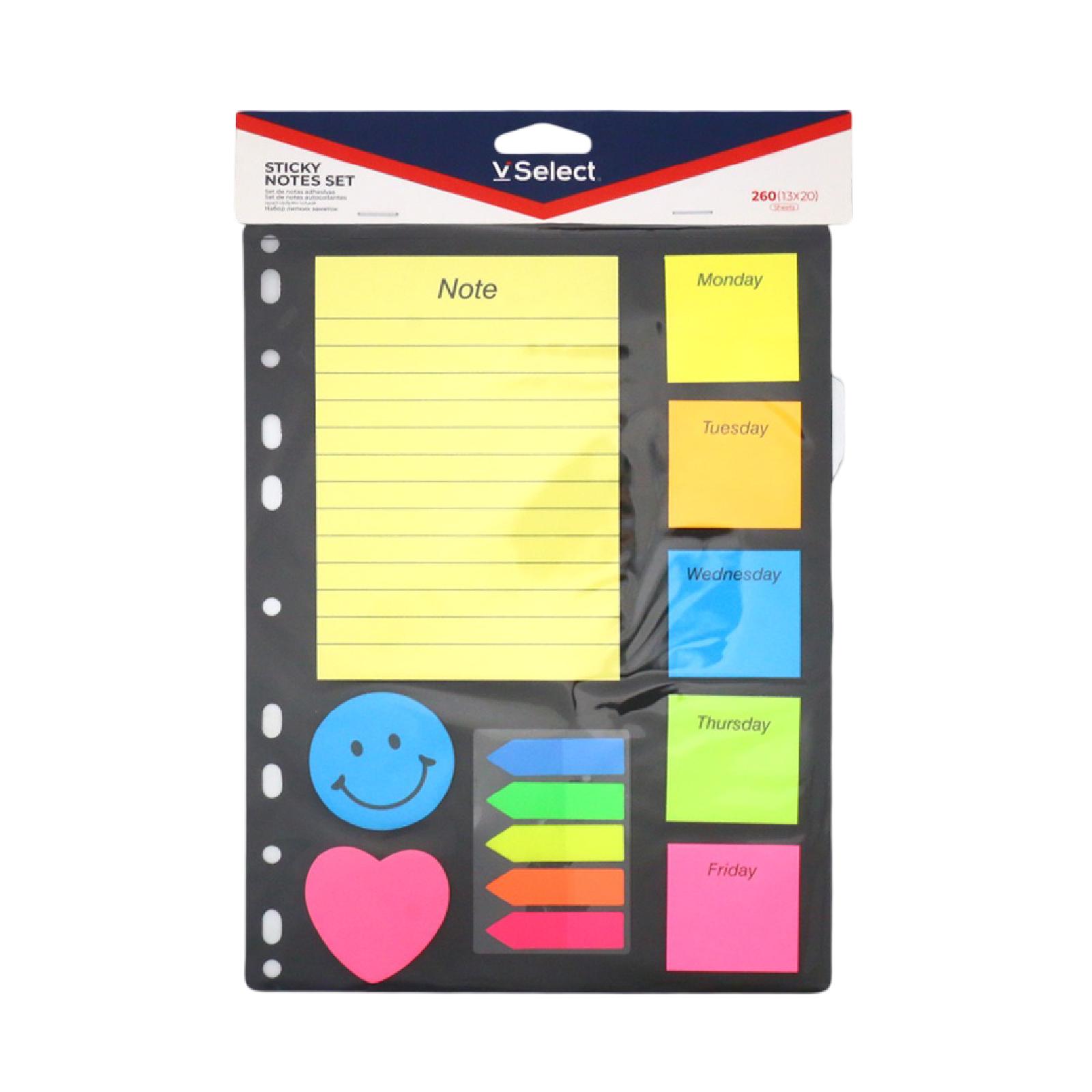 کۆمەڵێک ستیکەری تێبینیە و بۆ هەموو ڕۆژەکانی هەفتە گونجاوە، لەنێویاندا دەفتەری یاداشتێکی چەسپاوی تێدایە بۆ ئەوەی دڵنیابیت لە نوسینی هەموو تێبینیە گرنگەکان.