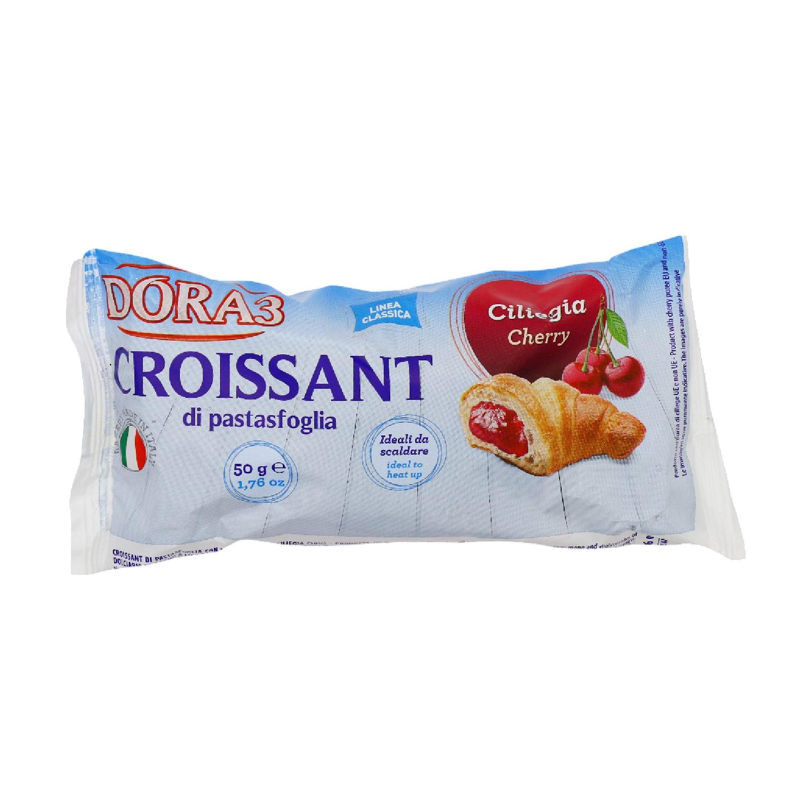 كرواسون طري ولذيذ ومميز محشو بكريمة ناعمة بنكهة الكرز الحلوة والمنعشة فان نكهة الكرز الذيذة فيه تجعله مثالي لفطور راقي أو كتحلية مع فنجان قهوة أو شاي.