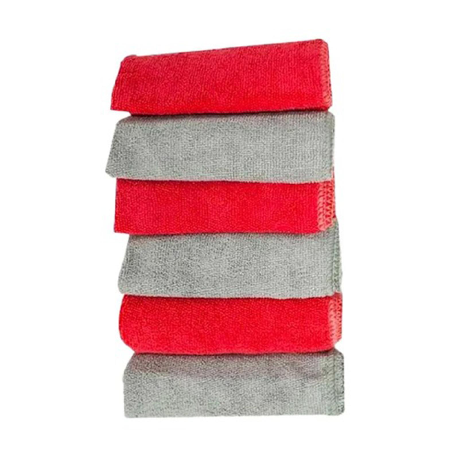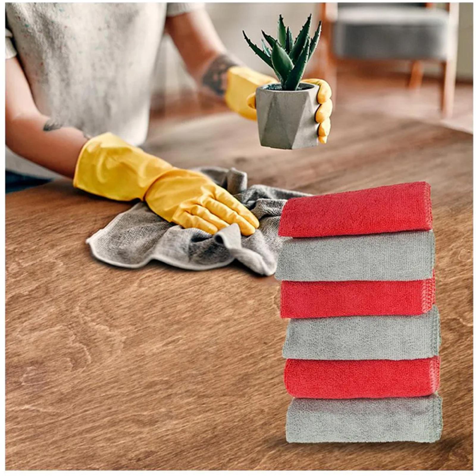 Set of 6 cleaning cloths made of soft microfiber, measuring 30 x 30 cm, used to clean dust and dirt from various surfaces.