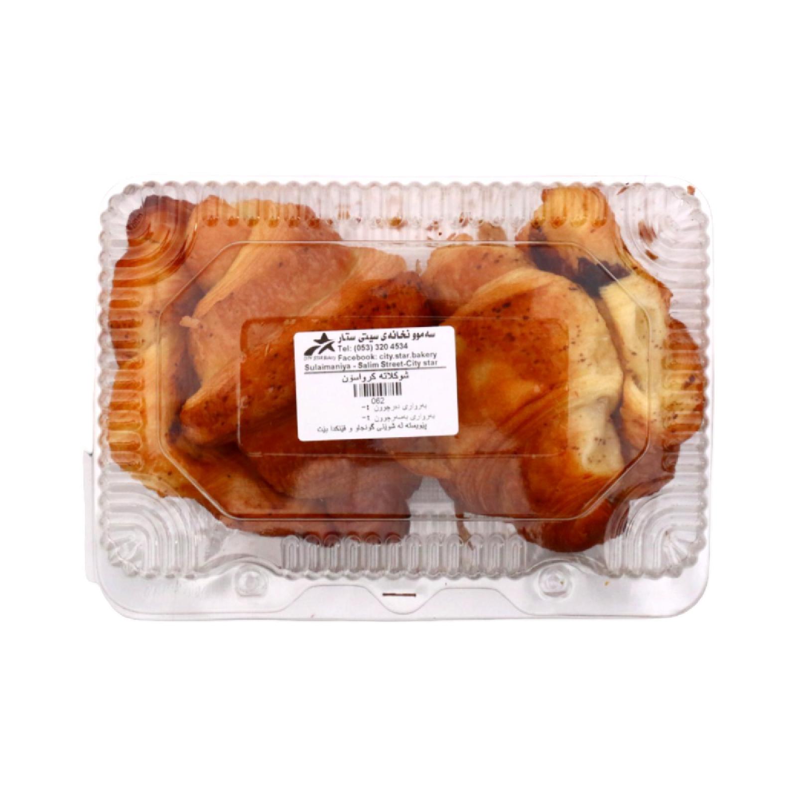 Chocolate croissant is considered one of the most delicious sweet foods, and it is popular among children and adults in all countries of the world It is sold in all pastry shops, and its a 4 piece.